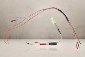 Pakke med 10 stk guld belagte kvalitets motor stik til AEG, der medfølger 5 stk sort og 5 stk rødt krympeflex.