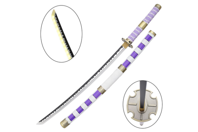 Sværdet er udelukkende ornamentalt, ikke skabt til kamp eller træning, men fremstår som en præcis og stilfuld dekorativ hyldest til One Piece-universet.