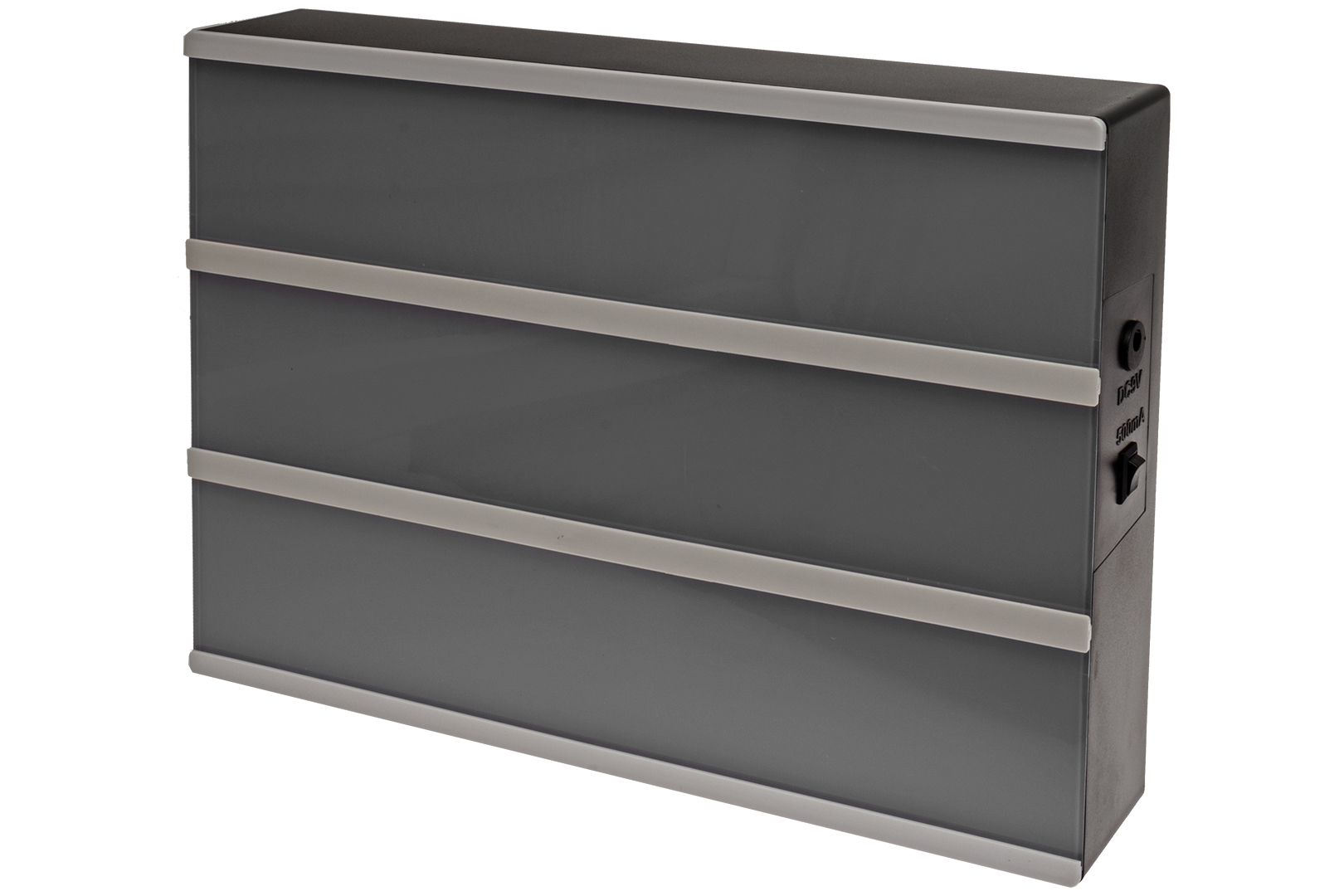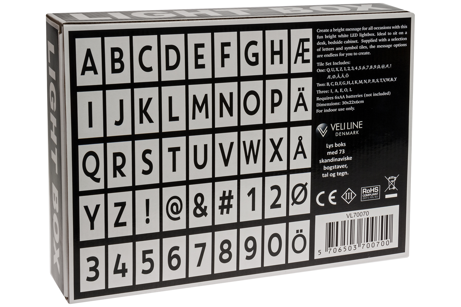 Boxen måler 30 x 22 x 6cm og bruger 6AA batterier eller en 9v 220volt adapter (medfølger ikke)