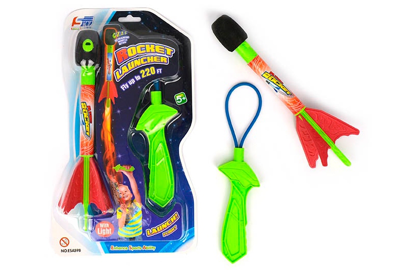 Plastik/skum raket med indbygget lys og affyrings håndtag.
