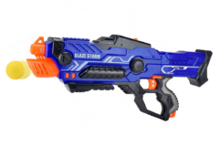 Blasteren lades via front grabet og har et indbygget tromle magasin som kan indeholde hele 10 stk af de 9.5cm lange mega pile.