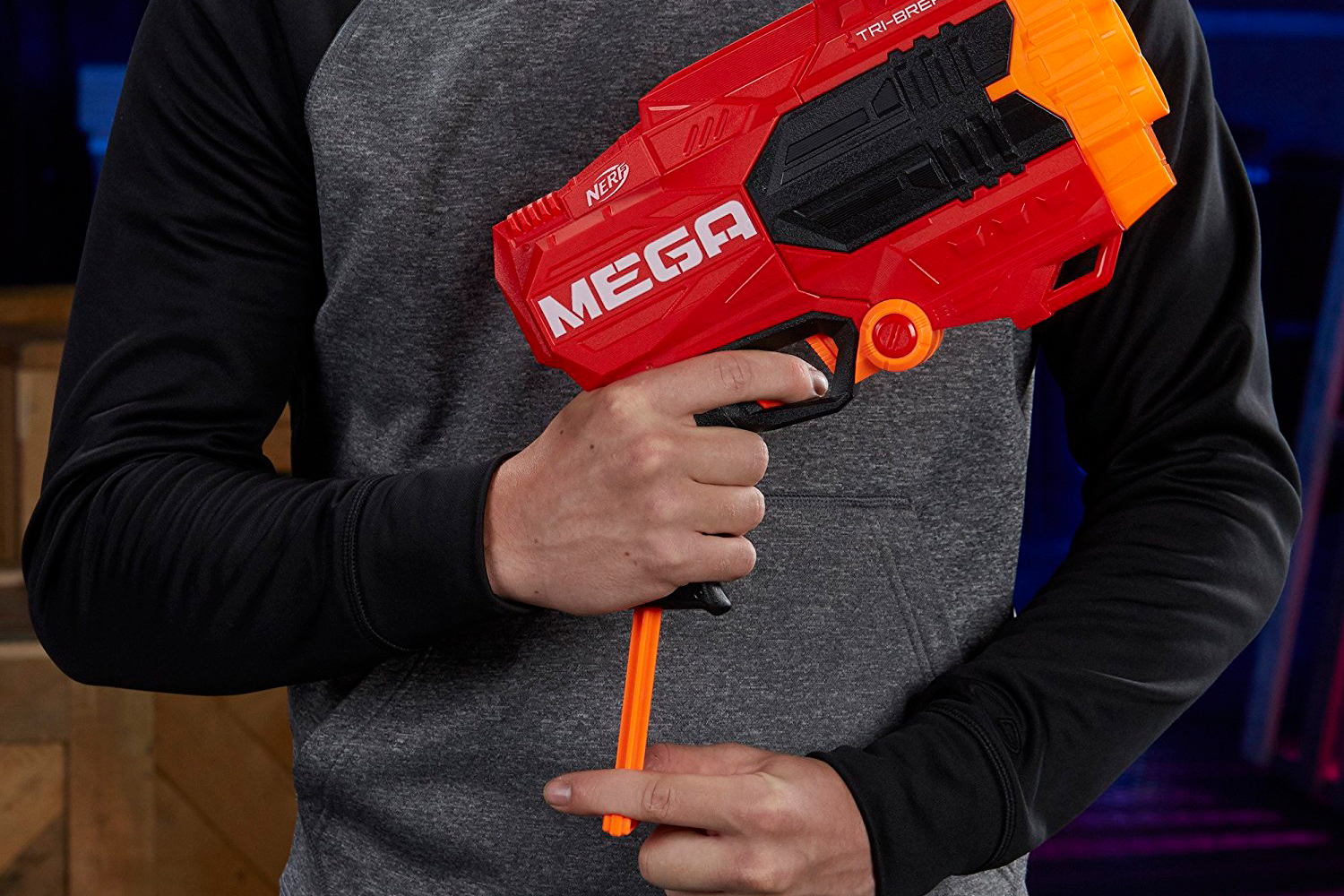 Rå nyhed fra Nerf, den kæmpe Tri-Break pistol har plads til 3 mega darts af gange og har impornerende kraft og rækkevide.