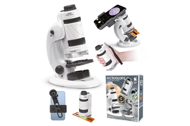 Mikroskop til Børn – 3-i-1 mikroskop med lys og mobilholder