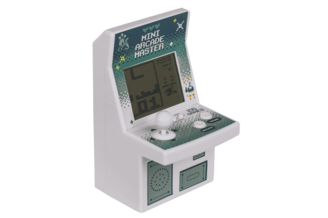 Arkadekabinettet har en farverig skærm og simple knapper, så både børn og voksne kan spille uden besvær. Spiludvalget spænder over små actionudfordringer, timing-spil, puzzles og andre hurtige aktiviteter, der er designet til at være sjove i korte sessioner. Det er ikke klassiske arkadespil – men nye, moderne minispil skabt til denne type kompakte enheder.