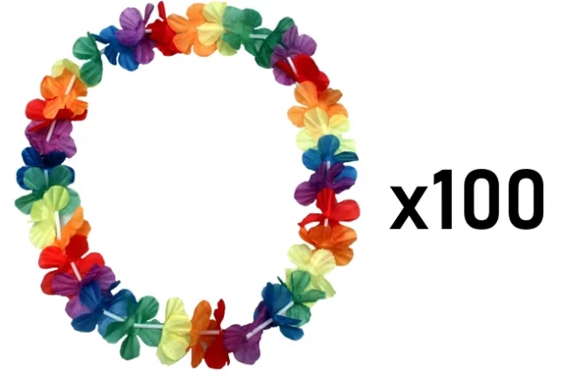 Med 100 aloha-kranse får du en komplet og professionel løsning, der gør enhver fest markant mere farverig, sjov og gennemført.