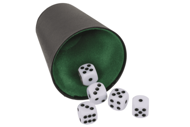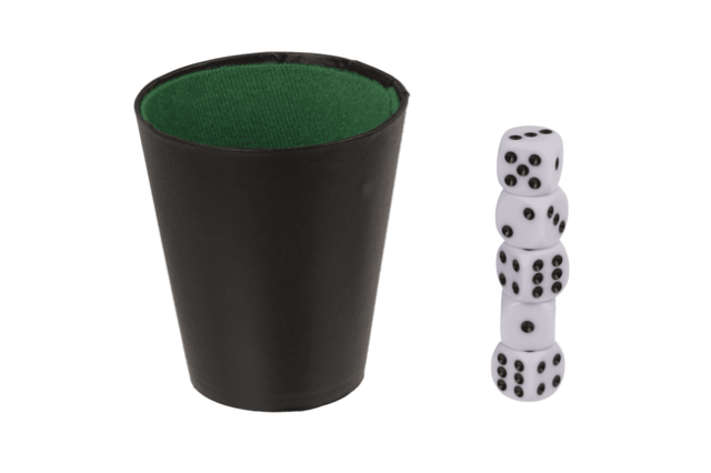 Den medfølgende terningekop giver spillet et autentisk og klassisk udtryk. Koppen gør det nemt at ryste terningerne og sikrer, at alle slag er ensartede. De fem terninger har tydelige øjne, så resultaterne er lette at aflæse, også når spillet går hurtigt.