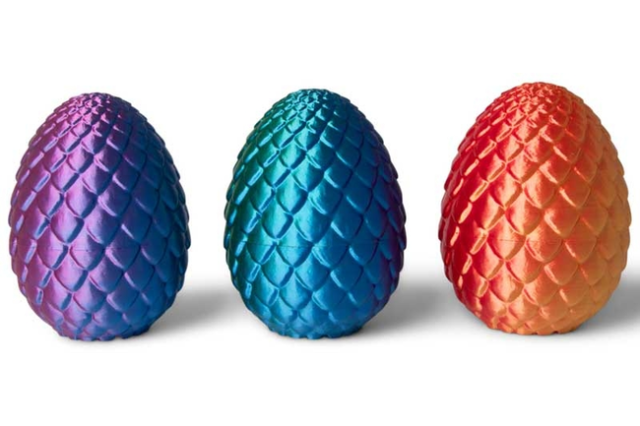 Giant 3D Printed Dragon Egg fås i tre flotte farvekombinationer.