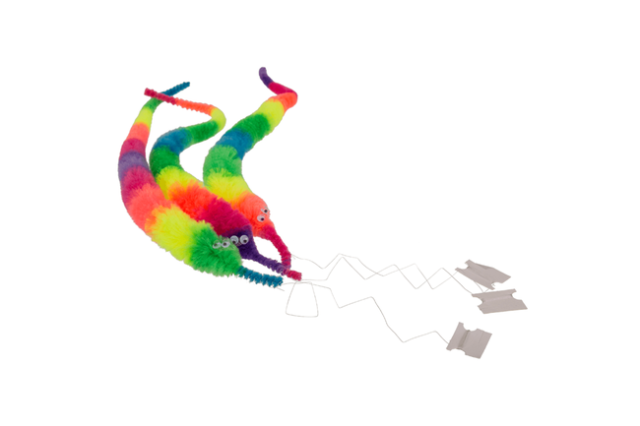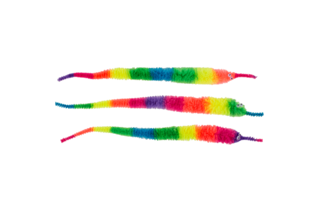 Denne regnbuefarvede magiske orm er et klassisk og fascinerende trick-legetøj, der skaber illusionen af, at ormen bevæger sig helt af sig selv. Den har en tynd, næsten usynlig snor, som er fastgjort i næsen på ormen, og når du trækker snoren mellem fingrene, kan du få den til at sno sig, dreje, danse og gemme sig i hænderne på en måde, der ser magisk ud for dem, der kigger på.