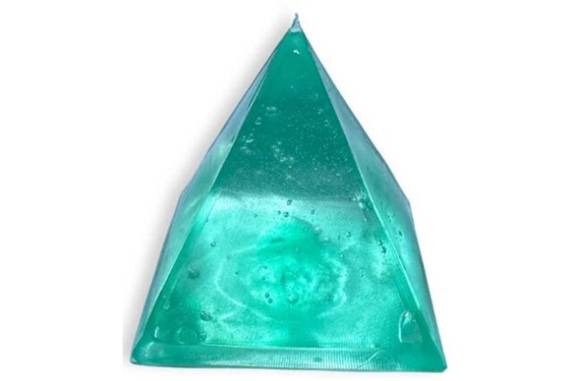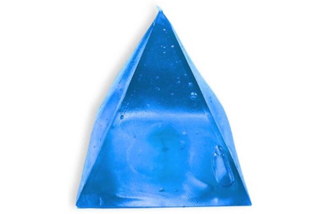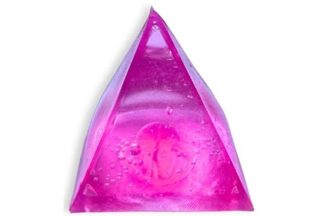 Scrunchems Pyramid fås i pink, lilla, blå og grøn. De transparente farver og det glitrende indre giver et flot og levende udtryk, når man trykker på den. Farverne fanger lyset og gør hver klemning til en lille visuel oplevelse.