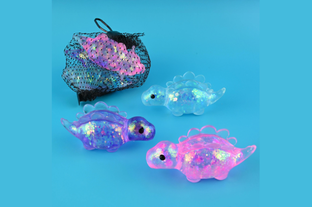 Denne lille pose indeholder tre Squeeze Sugar Dinosaur-figurer i farverne lyseblå, pink og lilla. Hver dinosaur er lavet af et blødt og elastisk materiale, der gør dem perfekte til at klemme, trykke og strække. Når du presser dem, får de en tilfredsstillende og sjov følelse, som hjælper dig med at slappe af og fokusere.