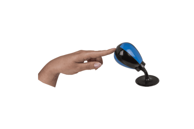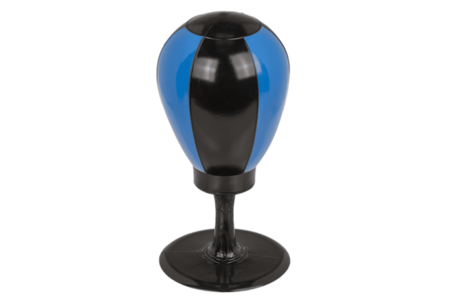 Boksebolden er monteret på en solid sugekop, der gør det nemt at sætte den fast på alle glatte overflader — fx skrivebordet, køkkenbordet, en rude eller et glat bordplade. Når den er sat fast, kan du slå let på den, puffe til den eller give den små slag, og den vil straks svinge tilbage, så du kan fortsætte. Den lille størrelse gør det muligt at bruge den næsten hvor som helst, uden at den fylder eller larmer.