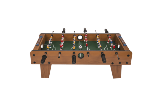 Banen er lavet i robust træ, som giver en stabil følelse under spillet. Stængerne glider let, og spillerne reagerer præcist, så du kan lave hurtige afleveringer og skarpe mål. Det gør det nemt at starte en kamp, selv hvis man kun har få minutter til rådighed.