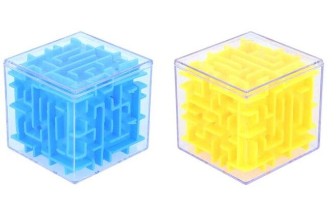 Puzzle Maze Cubes 3D 5,3 cm – sjov labyrintbold i flere farver
