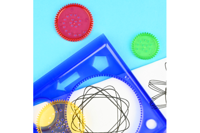 Det smarte ved en spirograf er, at den guider din bevægelse. Når du fører maling rundt i skabelonen, opstår der mønstre med en flot rytme. Du kan skifte farver undervejs og lave lag, så mønsteret får dybde. Du kan også prøve med forskellige typer maling og papir, så du finder den stil, du bedst kan lide. Delene er lavet i plastik, så de er lette at håndtere og nemme at tørre af efter brug.