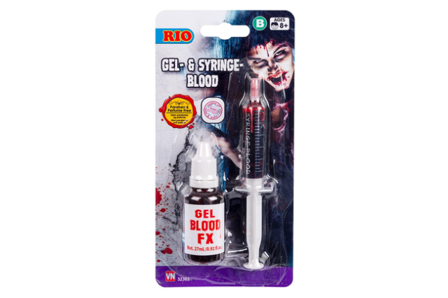 Falsk blod med smart sprøjte som gør det let at lave en uhyggelig effekt!