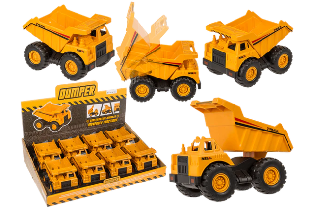 Construction Vehicle Dumper Truck – 12 cm egner sig både til indendørs og udendørs leg. Den fungerer lige godt på gulvet i stuen som i sandkassen i haven. De store hjul giver et stabilt greb, så dumperen nemt kan køre over ujævne overflader.