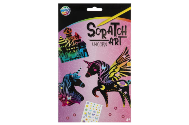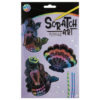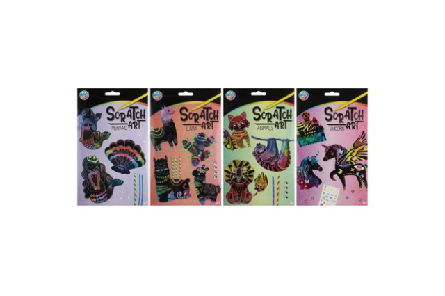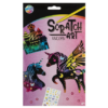 Denne farverige kradsekunst giver børn mulighed for at skabe deres egne flotte motiver. Med tre ark, stickers og en pen kan fantasien få frit spil, når de skraber mønstre og figurer frem.