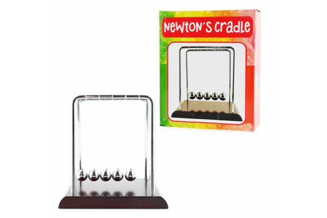 Newtons Cradle er fremstillet med kraftige metalkugler og en stabil plastikbase, der giver god balance under brug. Stativet holder kuglerne sikkert på plads og gør bevægelsen glidende og jævn. Materialerne er valgt, så kuglerne svinger frit og præcist, uden at konstruktionen vibrerer eller vælter.