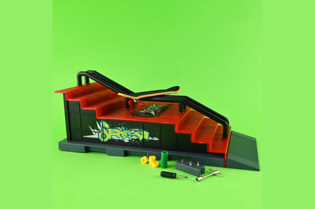 Med trapper og rail får du en mini-skatepark i hånden. Du kan lave tekniske slides på railen, hoppe ned ad trinene eller kombinere begge dele i én serie af tricks. Sættet er perfekt til at udfordre fingerfærdighed, kontrol og timing.