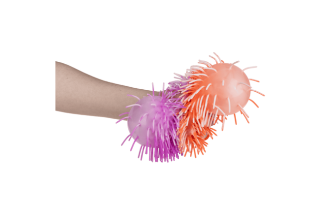 Når man trykker på bolden, giver den sig på en sjov og tilfredsstillende måde. Den er elastisk og kan klemmes, puffes, trykkes og rystes uden problemer. Det gør den perfekt som stressbold, fidget-toy eller et lille aktivitetselement i hverdagen. Mange synes, at de bløde “hår” giver en ekstra beroligende effekt, fordi de er rare at røre ved og stimulerer sanserne.