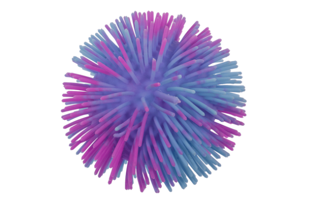 Bolden er dækket af tykke, bløde gummihår, som giver en virkelig behagelig og afslappende følelse, når man rører ved den. De elastiske hår bevæger sig let, når man trykker eller jonglerer bolden, hvilket giver en skøn sensorisk oplevelse. Den indbyggede hank gør det muligt at holde, svinge eller “jonglere” bolden i håndfladen, hvilket giver endnu flere måder at lege på.