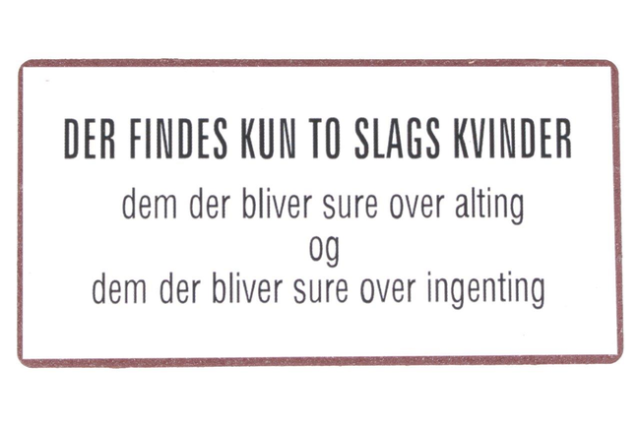 Nogle gange skal der ikke mere end en lille magnet til at gøre en helt almindelig dag lidt sjovere. Der findes kun to slags kvinder… (Magnet) er til dig, der kan lide et glimt i øjet på køleskabet, på kontoret eller på magnettavlen derhjemme. Teksten er kort, genkendelig og lavet til at skabe et smil, uden at du behøver gøre noget stort ud af det.