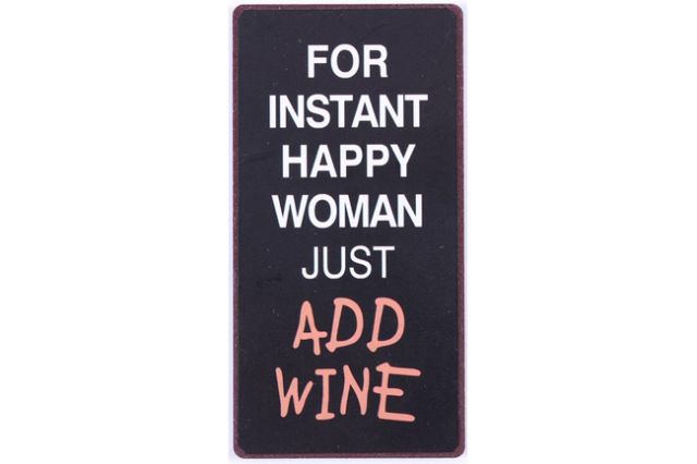 For instant happy woman just add wine (Magnet) er en lille, sjov magnet, der giver hverdagen et hurtigt grin. Den er oplagt til køleskabet, en magnettavle eller andre metaloverflader, hvor du gerne vil samle små beskeder. Teksten er på engelsk og rammer den klassiske, tørre humor, som mange elsker. Det er den type detalje, du lægger mærke til, når du går forbi, og som kan gøre et køkken lidt mere personligt.