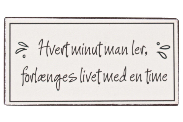Hvis du gerne vil have en enkel måde at gøre hverdagen lidt mere positiv på, er “Hvert minut man ler, forlænges livet…” en magnet, der passer lige ind. Den gør det nemt at hænge det vigtige op, og den giver samtidig et lille smil, hver gang du går forbi.