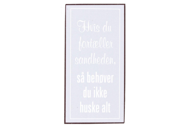 Nogle citater rammer bare plet, fordi de siger noget enkelt på en tør og sjov måde. Denne magnet med teksten “Hvis du fortæller sandheden, behøver du ikke huske alt” er lige sådan en. Den passer perfekt til dig, der kan lide humor i hverdagen, men stadig vil have noget, der ser pænt ud. Du får en magnet, der gør det lidt sjovere at hænge sedler, noter og små påmindelser op.