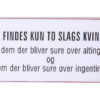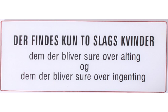 Uanset om du hænger det i hjemmebaren, i garagen eller i et hobbyrum, får du en detalje, der skaber reaktioner. Det er præcis det, et godt citatskilt skal kunne. Det skal være let at forstå, let at placere og sjovt at have hængende. Med “Der findes kun to slags kvinder…” får du et skilt, der leverer den stemning.