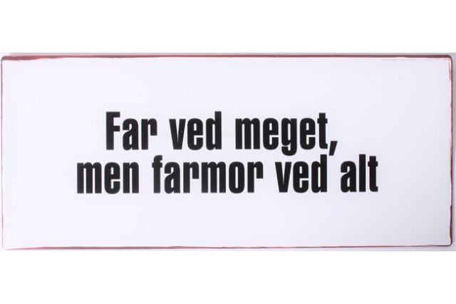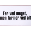 Far ved meget… (Metal Skilt) er til dig, der gerne vil have en enkel vægdekoration med et glimt i øjet. Det er en fin måde at gøre værkstedet eller hjemmet lidt mere dit. Og det er en gave, der næsten altid bliver taget godt imod, fordi den er let, sjov og nem at finde plads til.