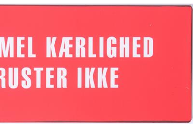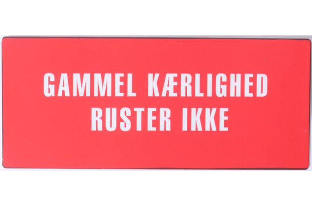 - Metal skilt med teksten “Gammel kærlighed ruster ikke”