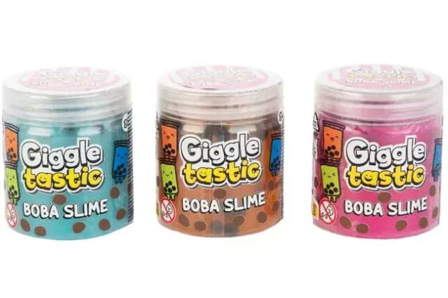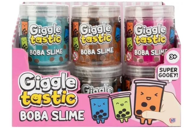 Giggletastic Boba Slime fås i tre assorterede farver. Det giver et ekstra overraskelsesmoment, når man vælger sin slime. De flotte farver understøtter det legende udtryk og gør produktet endnu mere indbydende. Det er en lille detalje, som gør slimen ekstra sjov at tage frem igen og igen.