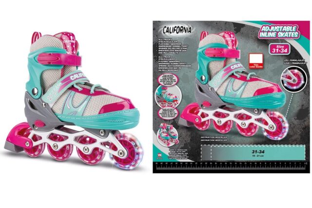 California justerbare inliners – Turkis/Pink (str. 35–38)