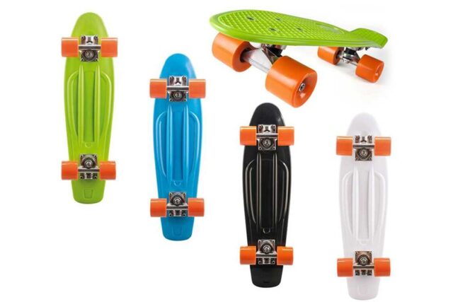 Skateboardet er lavet i plast og måler 56×15 cm.