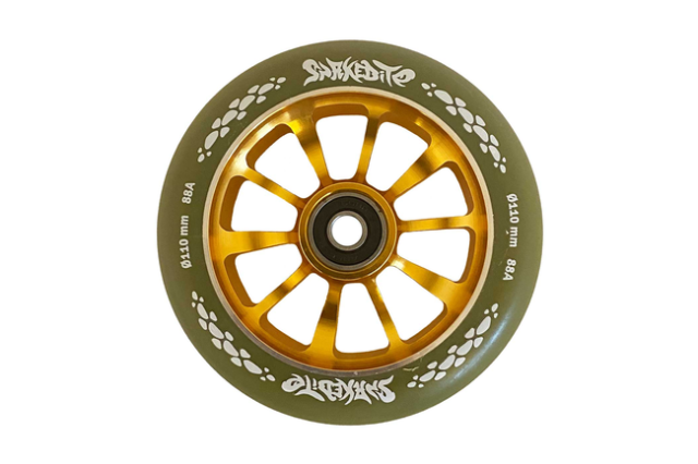 Snakebite 110mm Aluminium Wheel Green/Gold – opgrader dit løbehjul med stil og fart