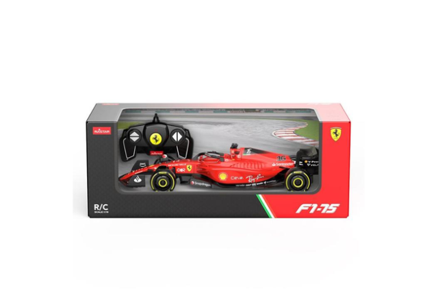 Denne RC Ferrari 75 giver ægte Formel 1-stemning. Den kan køre frem, tilbage og dreje til siderne, styret med præcision via fjernbetjeningen.