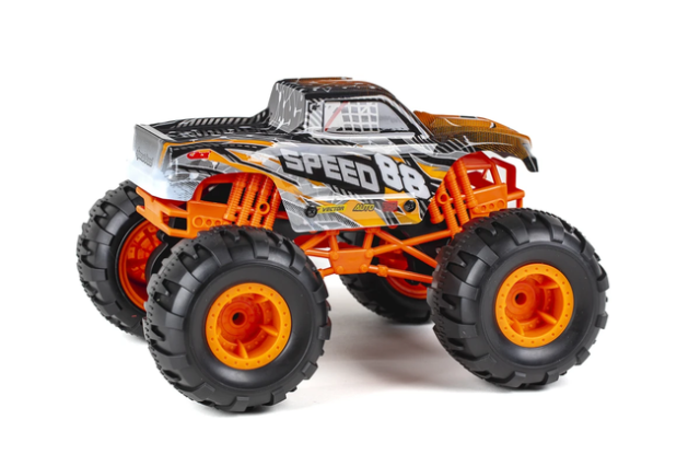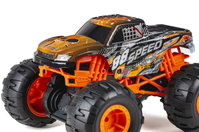Stuntbilen er bygget til at blive brugt – og det kan ses. Den solide konstruktion gør den modstandsdygtig over for slag og stød, mens de store hjul og fleksible aksler hjælper med at absorbere ujævnheder, uanset om du kører på gulv, tæppe eller udendørs flade.