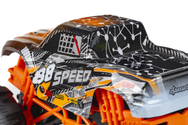 Den indbyggede gyro-teknologi er bilens hemmelige våben. Den giver dig mulighed for at udføre fantastiske tricks – som at køre stående på baghjul eller balancere på forhjulet – helt uden at miste kontrol. Gyroen stabiliserer bilen under bevægelse og gør hvert stunt glidende og præcist. Sammen med det firehjulstrukne system (4WD) får du et køretøj, der både har greb, kraft og smidighed.