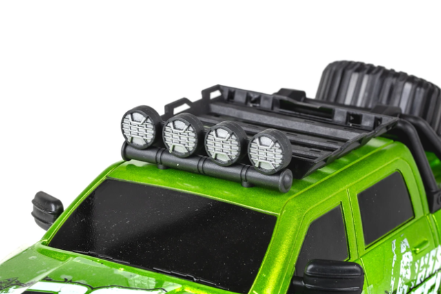 Forlygterne er udstyret med klare LED-lys, så du kan fortsætte kørslen, selv når mørket falder på. Det giver bilen et realistisk udseende og gør køreoplevelsen ekstra spændende, især indendørs eller i skumringen.