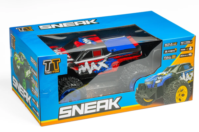 Tec-Toy SNEAK MAX 1:12 giver dig kraft, præcision og frihed. En fjernstyret bil med masser af fart og kvalitet. Kør gennem haven, over grusveje eller indendørs – eventyret stopper aldrig!