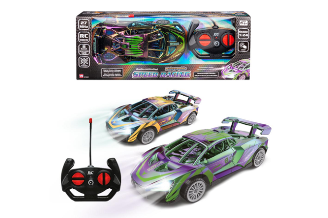 Oplev ægte racerstemning med R/C Speed Shining Racer – en fjernstyret bil, der kombinerer fart, lys og et unikt holografisk design. Denne seje racerbil fås i både guld og grøn, og dens skinnende overflade reflekterer lyset på en måde, der får den til at se ud som om, den bevæger sig – selv når den står stille.