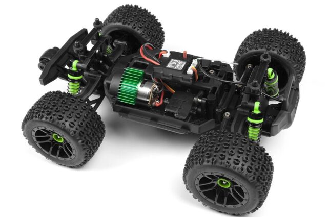Karrosseriet er forstærket og fabriksmonteret, og den grønne version leveres med farvekoordinerede detaljer som støddæmpere, hjul og senderhjul – alt i en fed, gennemført stil.