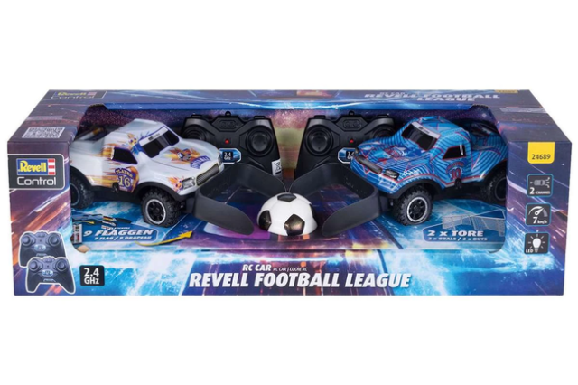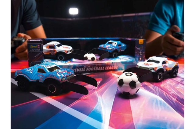 Med Revell Control Football League fjernstyrede biler kombineres fart, sjov og fodbold i ét spil! Dette sæt giver børn og familier mulighed for at spille en helt ny form for fodbold – hvor bilerne spiller bolden i mål i stedet for spillere.