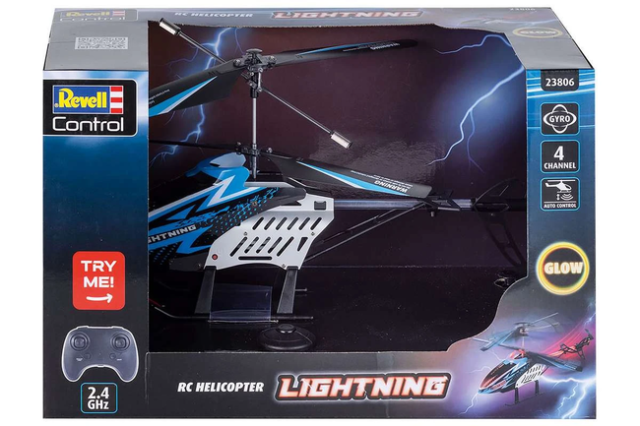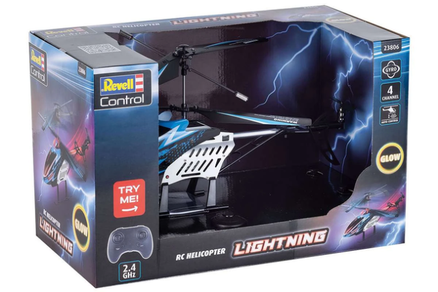 Lightning-helikopteren leveres næsten flyveklar. Du skal blot oplade batteriet, indsætte batterier i fjernbetjeningen – så er du klar til at lette. Det medfølgende udskiftningsrotorsæt forlænger levetiden og gør det nemt at vedligeholde modellen.