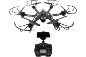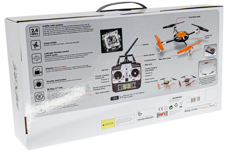 Advanceret RC Quadkopter “UFO” i nyt design og 3 aksers qyro stabilisator, 4 kanals 2,4 GHz sender med LCD display. Kan loope med 360 graders eversion funktion.