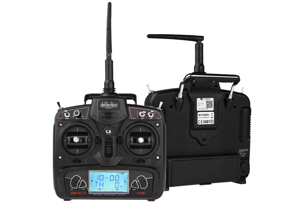 Med til at styre dette monster medfølger der det profesionelle Devo 7 fjernstyringsanlæg, som med sit store digitale display giver dig fuld kontrol over alle quadkopterens funktioner.