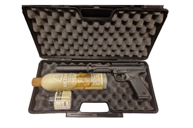 Dette bundle er udviklet til dig, der ønsker et komplet og kraftfuldt setup uden at skulle sammensætte delene selv. Kernen i pakken er den velkendte Action Army AAP-01 Assassin, en gasblowback pistol, der er blevet populær for sin pålidelighed, lette konstruktion og brede muligheder for opgradering. Pistolen kombinerer glasfiberforstærket polymer med metaldele, hvilket giver en stærk og driftssikker sidearm med lav vægt.