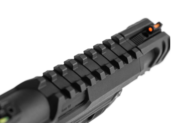 Sigtet består af højtsynlige fibersigte for hurtig og præcis målretning. Øverst og nederst på løbet sidder der Picatinny-skinner, som gør det nemt at montere f.eks. rødpunktsigte, lygter eller lasersigte.