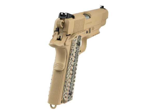 Pistolen er lavet som den klassiske Colt model, men er monteret med en moderne railed ramme som går det muligt at montere lys eller laser.